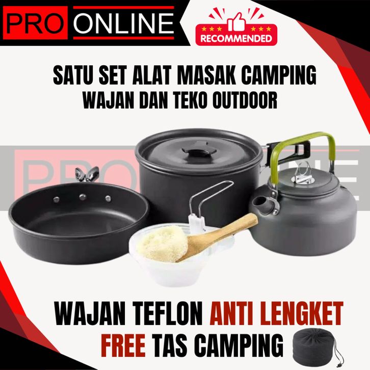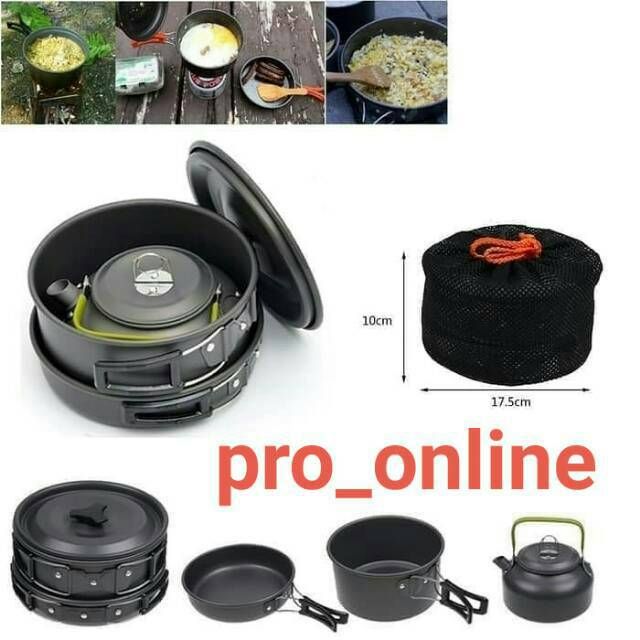 Cooking Set Plus Teko DS-3 Nesting 3-4 Person Camping Outdoor Alat Masak Teko / Ceret Dan Wajan