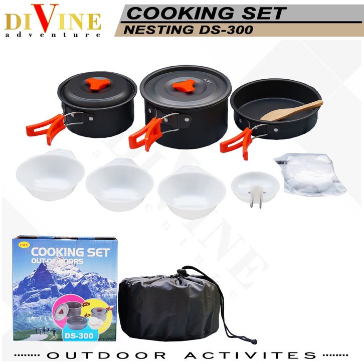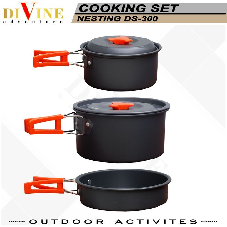 Cooking set ds 300 alat masak camping 3 in 1 alumunium anodized nesting outdoor ds300