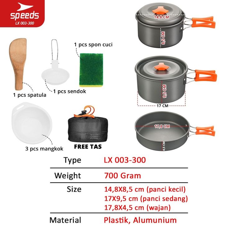 SPEEDS Alat Masak Camping Piknik 3in1 Portable Alam Serbaguna Mancing Lengkap Outdoor 003-300