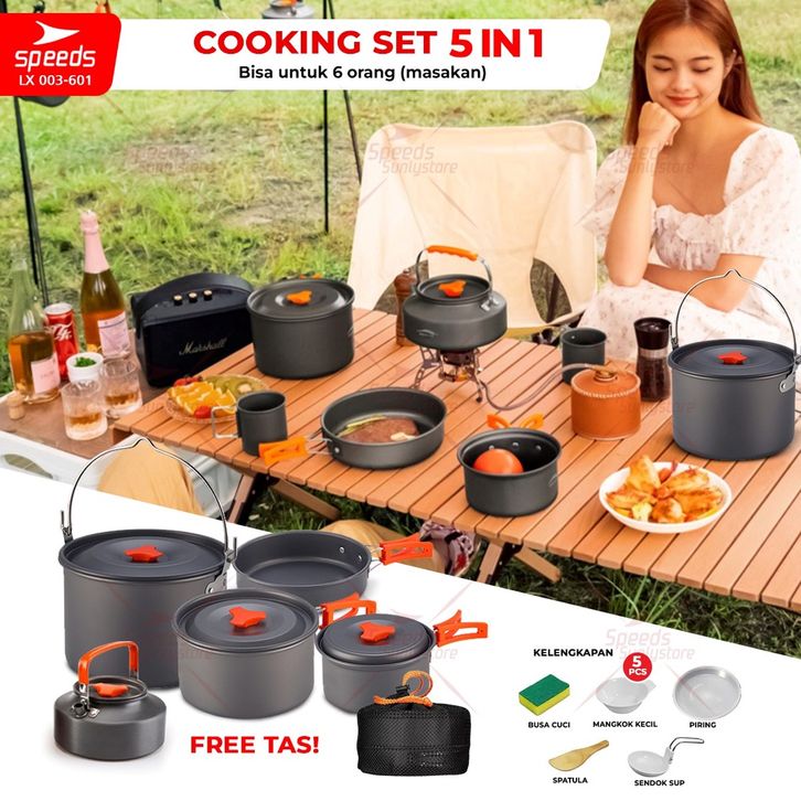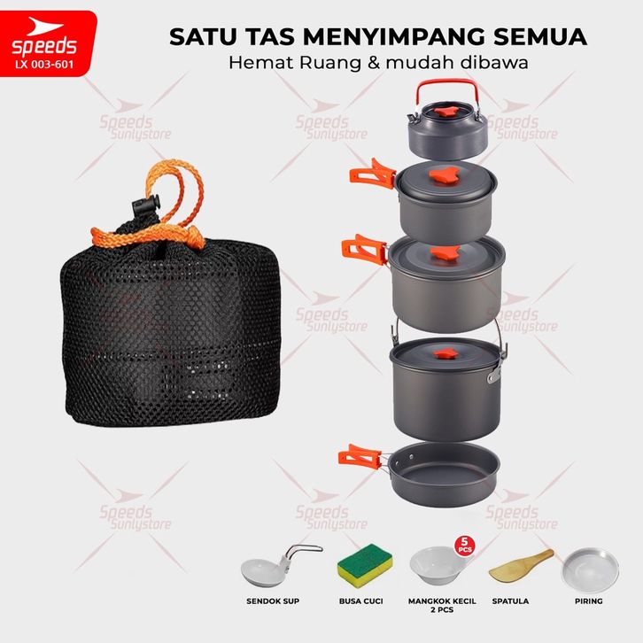 SPEEDS Alat Masak Set Mini Camping Cooking Set 6 Orang Nesting Stove Panci Teko Cookware Portable