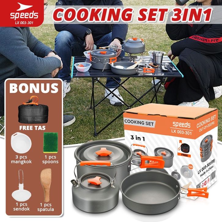 SPEEDS Alat Masak Camping Piknik 3in1 Portable Nature Serbaguna Mancing Lengkap Outdoor 003-301