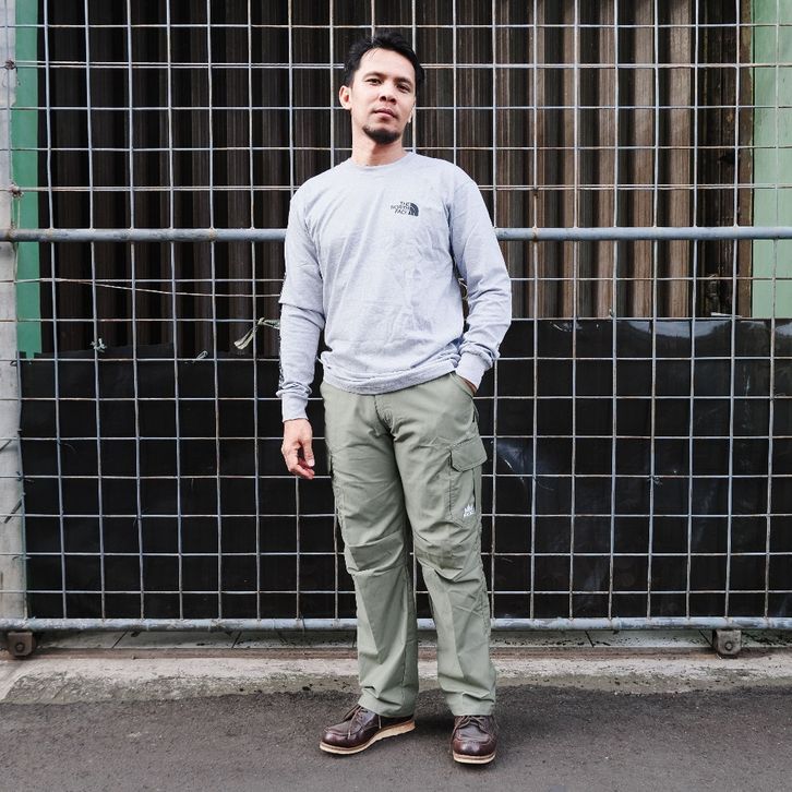 Celana Panjang Cargo Pria Irco Summitrex Sage Green Regular Fit Pinggang Karet - Cargo Pants Tebal