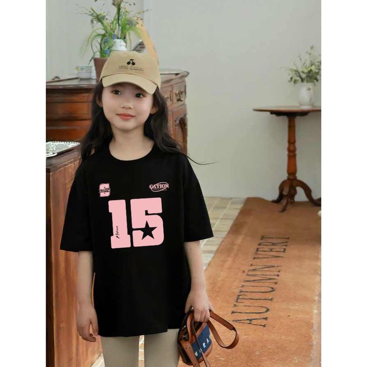 Kaos anak|cewek 10 tahun import|2-12 Tahun|kaos Cetakan Angka Merah Muda 15 yang lucu|korea style premium baju atasan|K