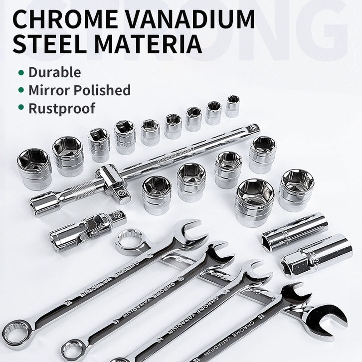 Murah REAIM 61PCS Tool Kit Set Kunci Toolkit Toolbox Alat Mobil Set Kotak Alat Kunci Pas Torsi Set Alat Kunci Pas Kunci