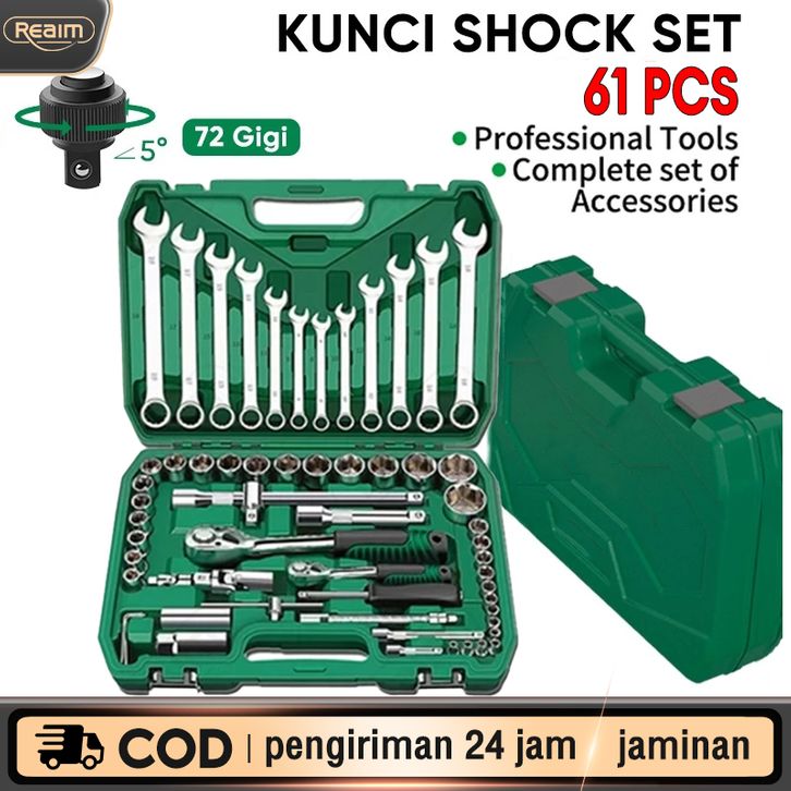 Promo Reaim Tools Set 61/151/172/216pcs 72gigi kunci shock set Hand Toolset Shock Mobil Motor Lengkap Socket Tool Kit s