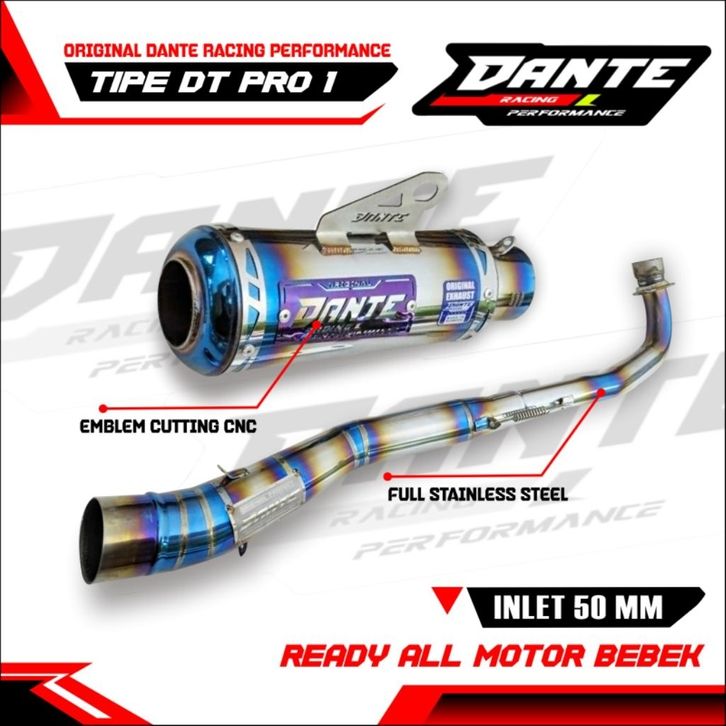 TERLARIS KNALPOT ORIGINAL DANTE RACING TYPE DT PRO 1 TITANIUM LOOK JUPITER Z VEGA SMASH SUPRA KARISMA