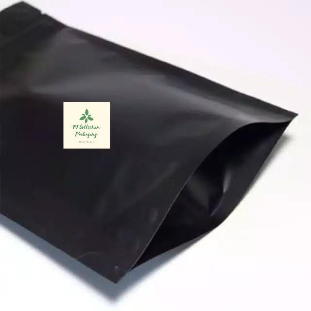 Standing Pouch Aluminium Foil Zipper Black Doff 250 gram 13 x 20 cm Plastik Klip
