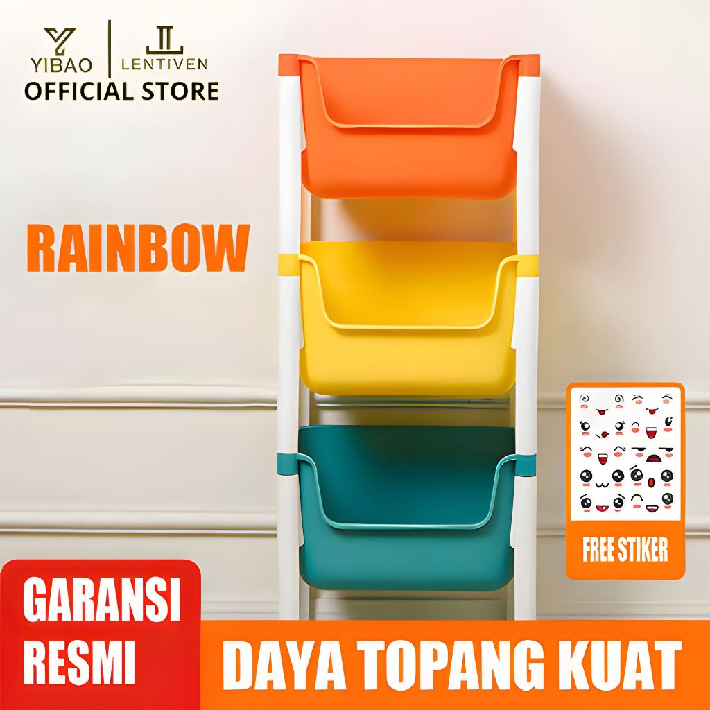 [Mall] YIBAO LENTIVEN RAK SUSUN SERBAGUNA 4 TINGKAT BAHAN PLASTIK DENGAN RODA RAK PENYIMPANAN TERBUKA RAK TROLLEY TOY STORAGE DESK