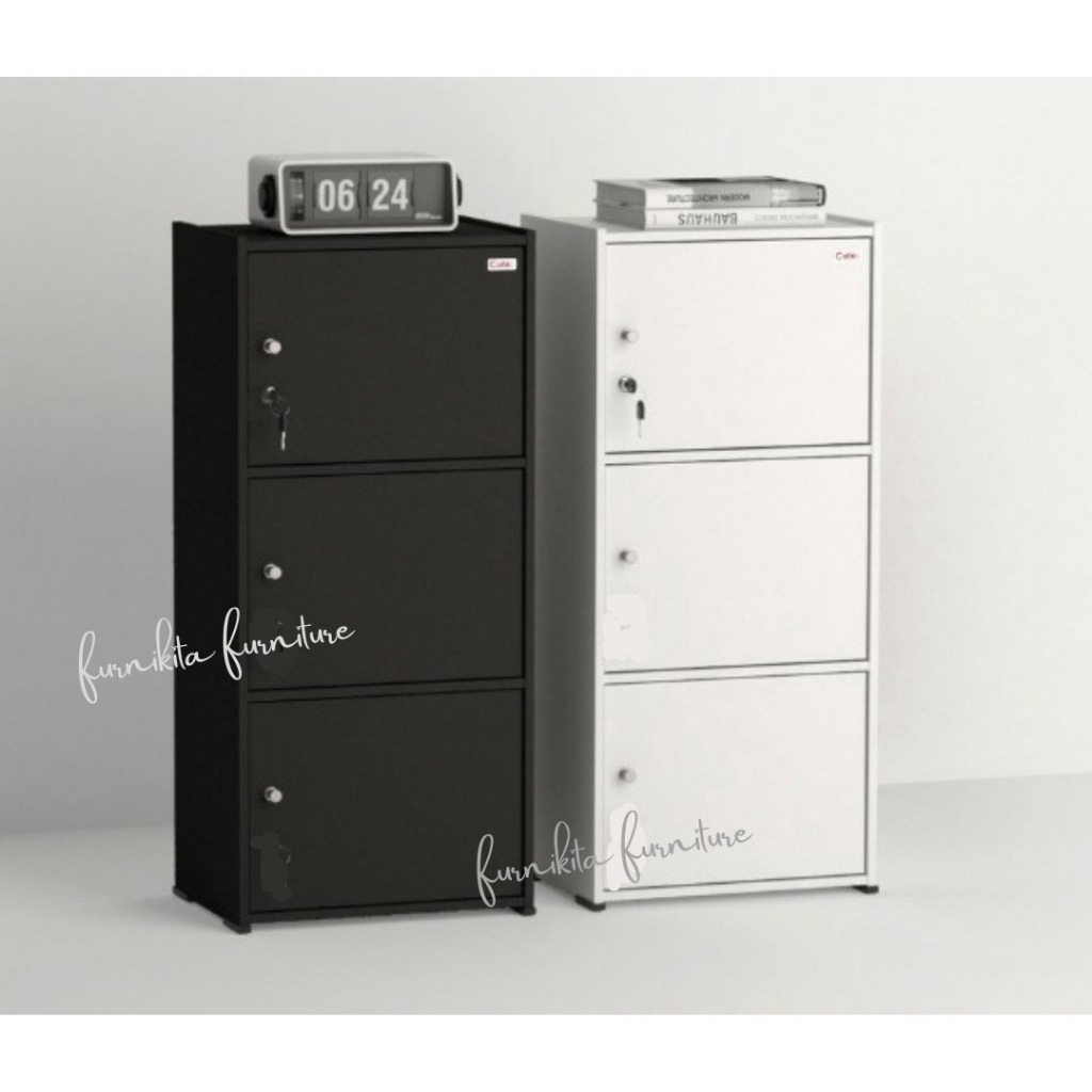 [Mall] RAK SERBAGUNA SUSUN 3 KAYU DENGAN PINTU DAN KUNCI RAK BUKU