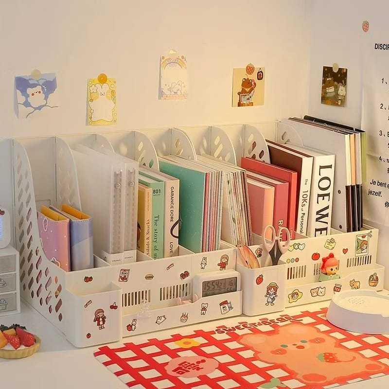 [Mall] RAK BUKU MINIMALIS AESTHETIC TEMPAT PENA + STICKER / RAK PENYIMPANAN DESKTOP ORGANIZER BOX FILE
