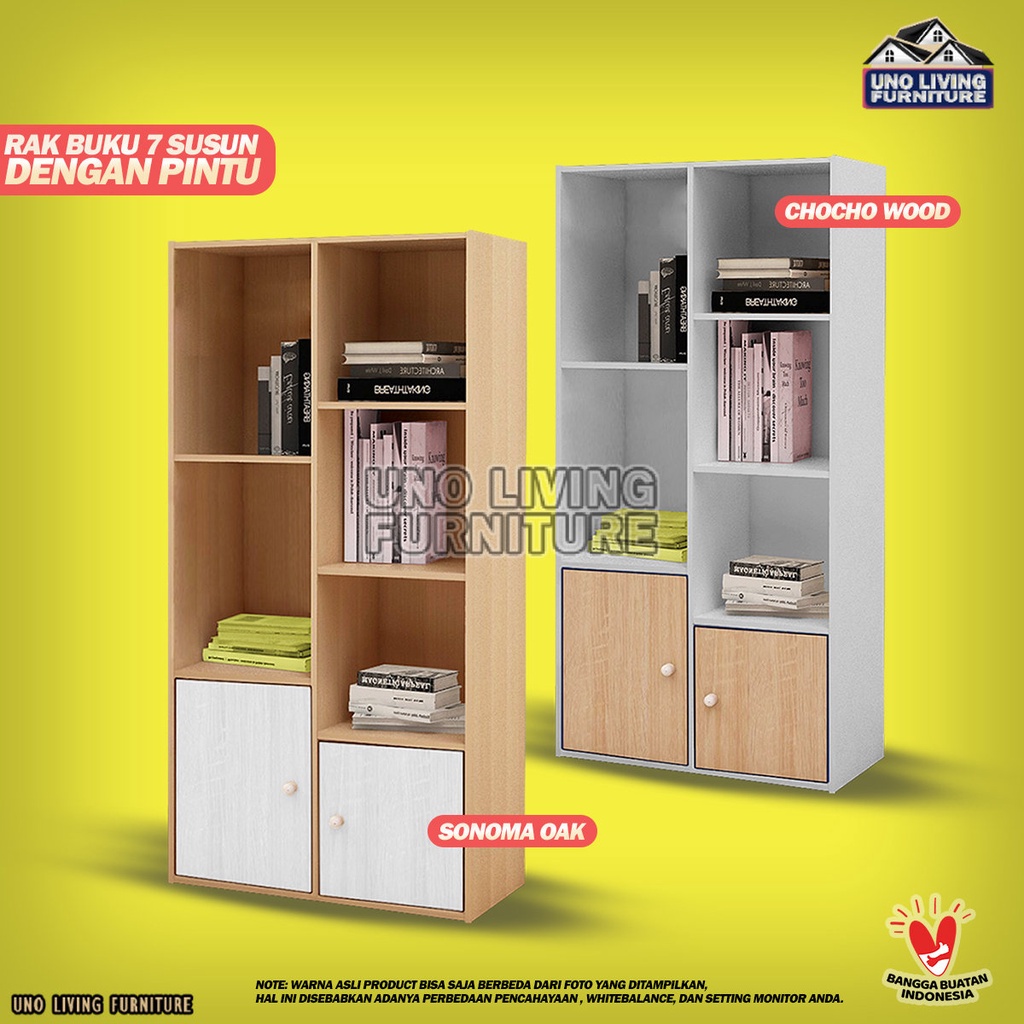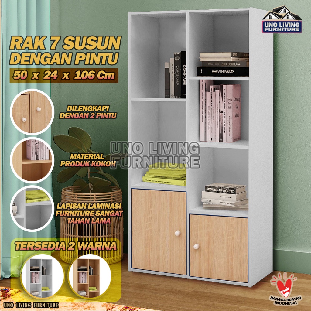 [Mall] RAK BUKU 7 SUSUN SERBAGUNA LEMARI BUKU RSG 7 SUSUN DENGAN PINTU RAK BUKU MINIMALIS