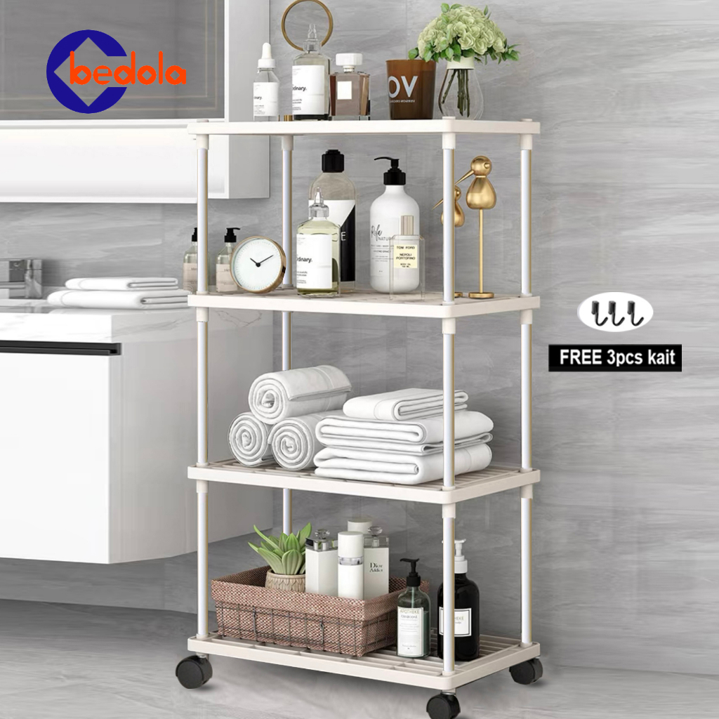 [Mall] RAK DAPUR PLASTIK ACSTHETIC RAK SUSUN RAK SERBAGUNA RAK PANCI PUTIH 4 LAYER DENGAN RODA FREE 3 KAIT