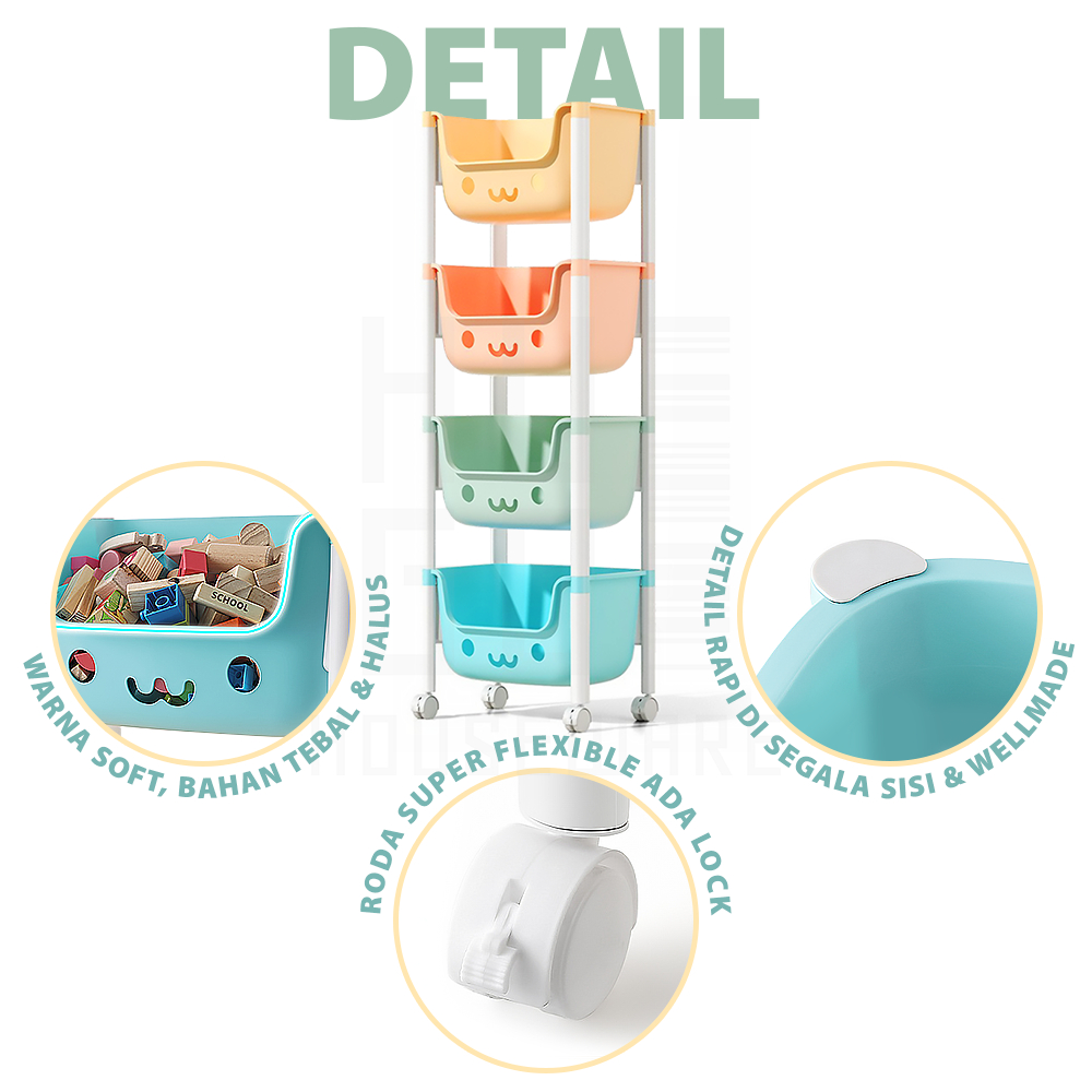 [Mall] HUGO RAK TROLI SUSUN MACARON RAK DAPUR SERBAGUNA RAK MAINAN ANAK PASTEL RAK PENYIMPANAN BUKU SERBAGUNA DENGAN RODA