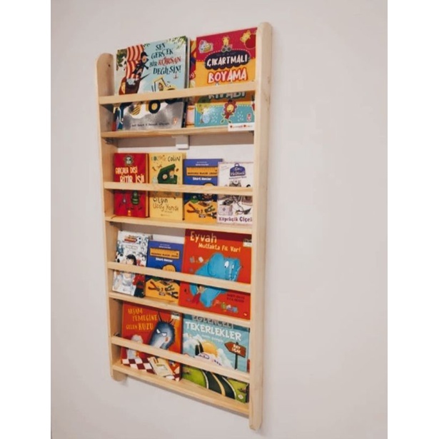 [Mall] RAK BUKU 4 SUSUN TEMPEL DINDING BAHAN KAYU SOLID