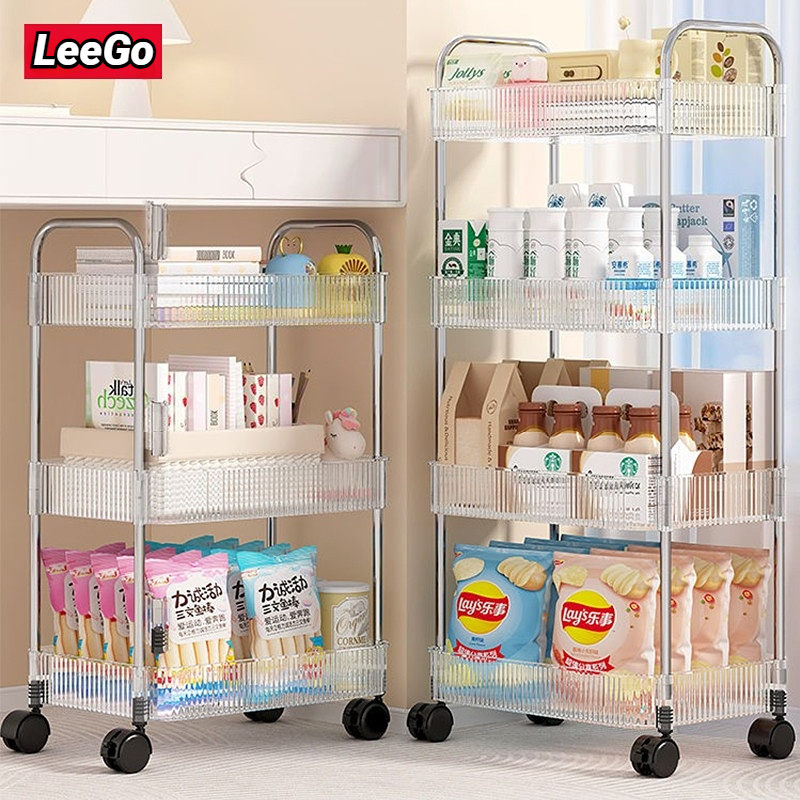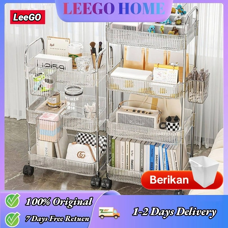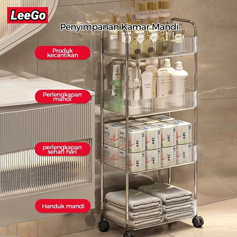 [Mall] LEEGO RAK TROLI SUSUN STAINLESS STEEL RAK KOSMETIK 4 TINGKAT DENGAN RODA SERBAGUNA RAK KAMAR MANDI RAK SALON TROLLEY DENGAN KERANJANG JARING AKRILIK TRANSPARAN ACRYLIC RAK