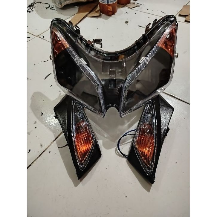 Murah Paket Reflektor Lampu Depan Plus Lampu Sen Reteng Depan Vario 110 Karbu Lama Custom Hitam Oranye Fullset Elegan