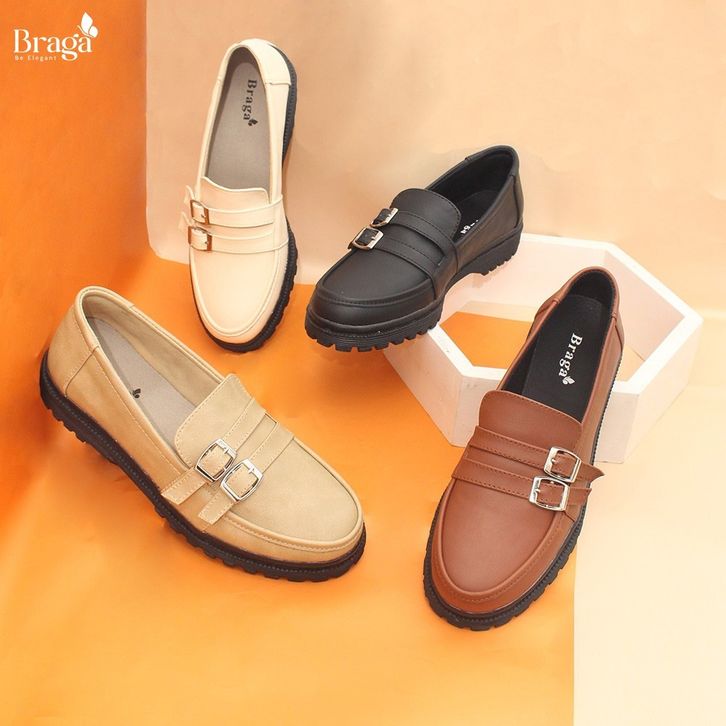 PROMO Braga Akira Series B 3551 - Sepatu Flat Shoes Docmart Wanita Loafers Casual Kuliah Kerja Hangout ugidl