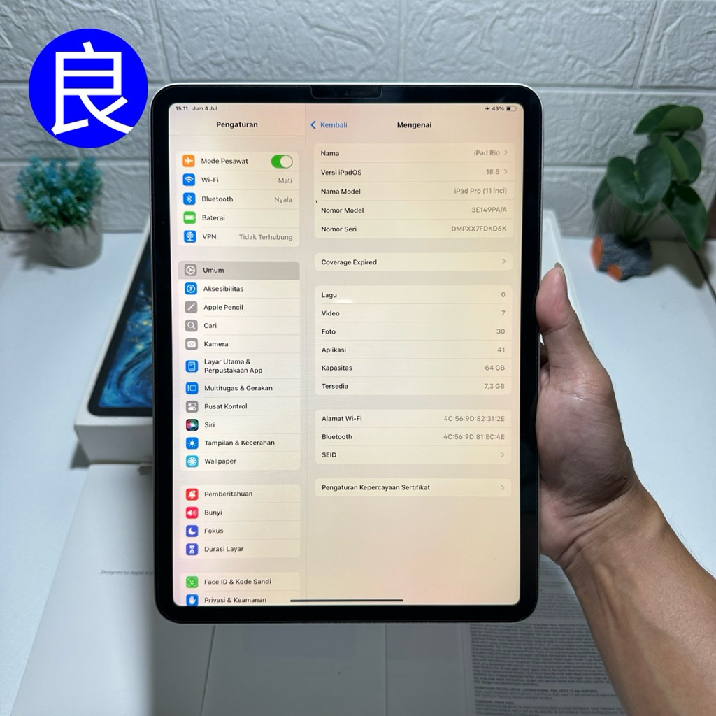 IPAD PRO 11 INCHI 2018 64GB SILVER IBOX WIFI ONLY GARANSI RESMI INDO FULLSET ORI MULUS LIKE NEW BEKAS SECOND 11 INCI 11" INCH WI-FI PERAK PUTIH WHITE 64
