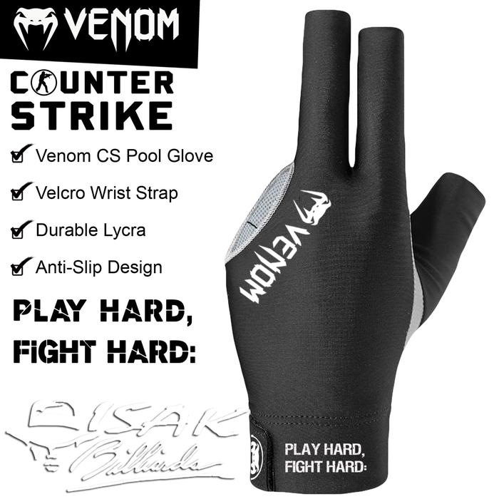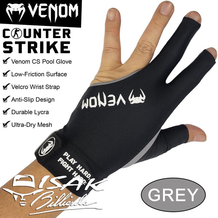 TERLARIS VENOM CS PRO GLOVE GREY ANTI SLIP SARUNG TANGAN BILLIARD LYCRA MESH XS