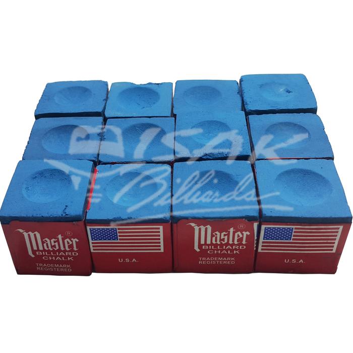 TERLARIS MASTER CHALK USA 12 PIECE BILLIARD CHALK KAPUR BILIAR BIRU