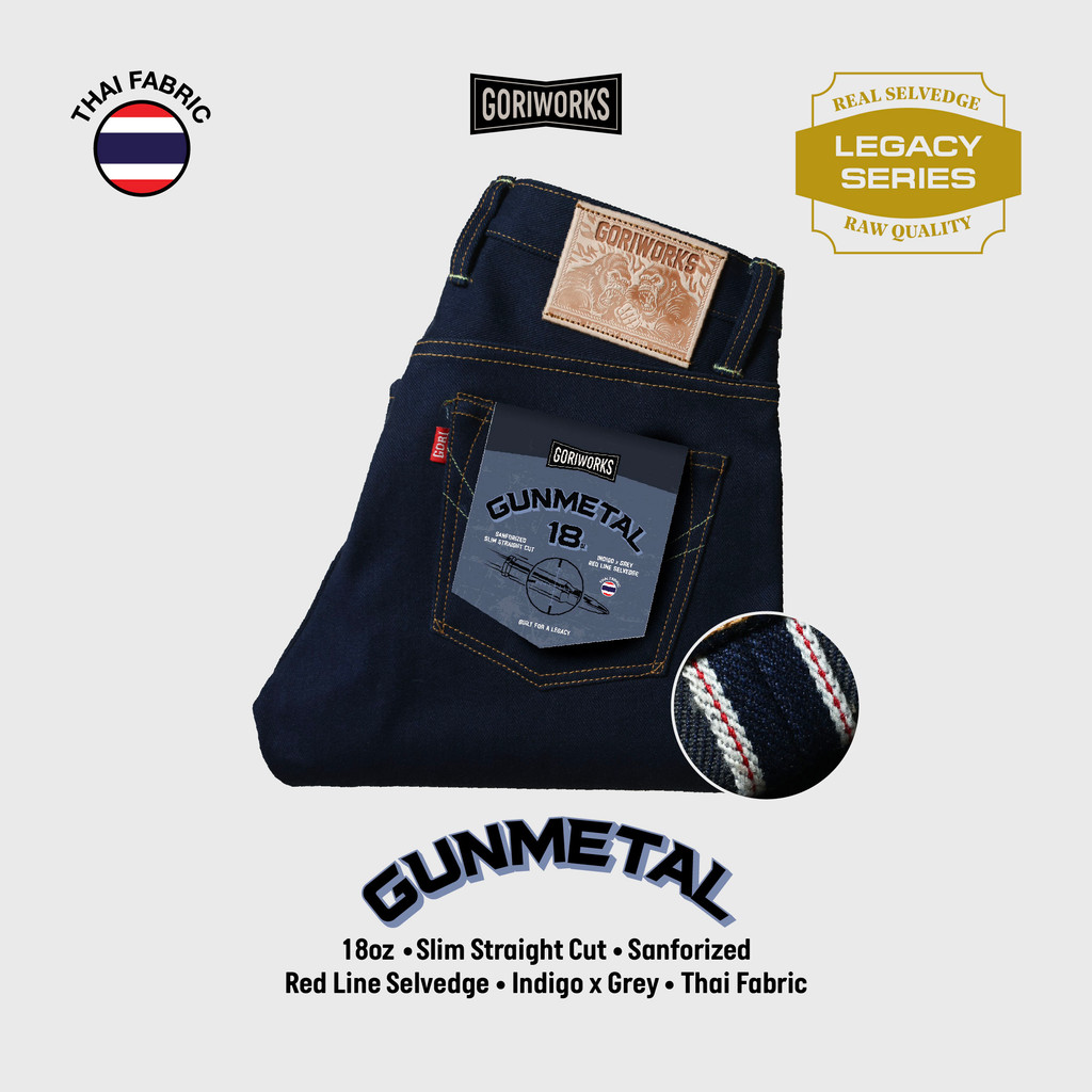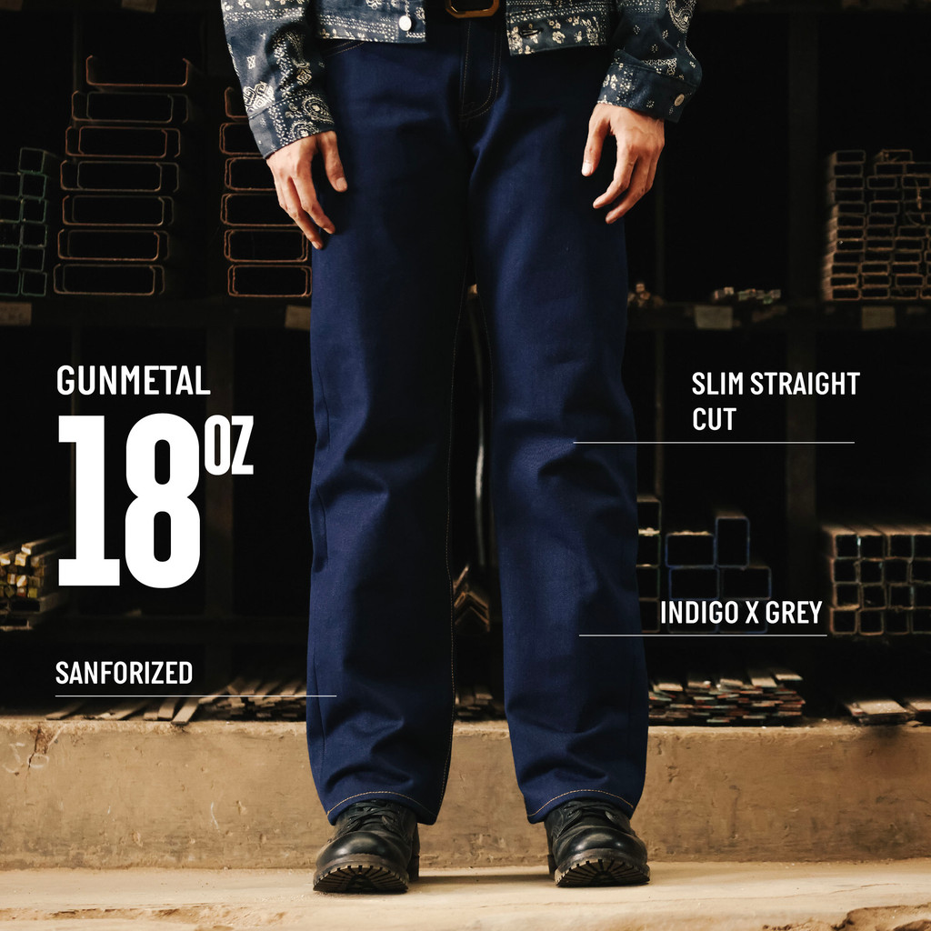 GORI WORKS - GUN METAL - SELVEDGE RAW DENIM 18OZ - SLIM STRAIGHT CUT