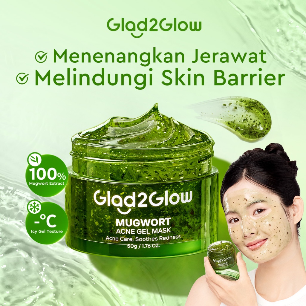 MASKER WAJAH GLAD2GLOW MUGWORT ACNE GEL MASK 50G KOMEDO DAN PORI PORI MASK SLEEPING MASK SHEETMASK CLAY MASK HIJAU MASKE