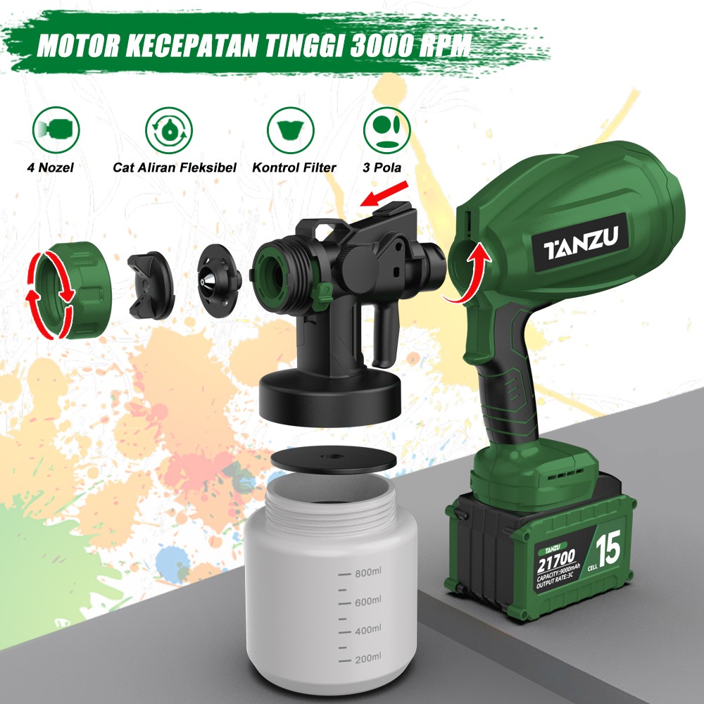 semprot cat listrik TANZU Electric Spray Cordless 800ML semprotan cat kompresor Mesin Semprot Spray