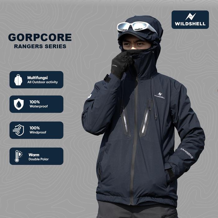 FLASH SALE WILDSHELL JAKET GUNUNG GORPCORE RANGERS SERIES 100 PERSEN WATERPROOF HITAM L
