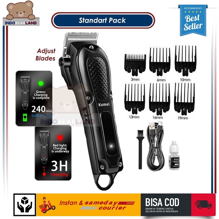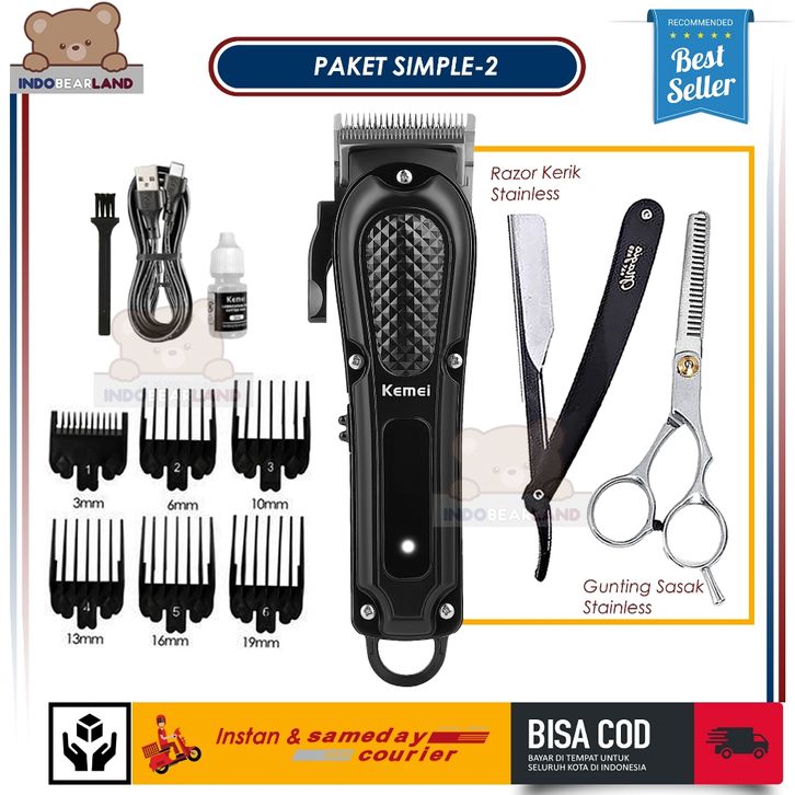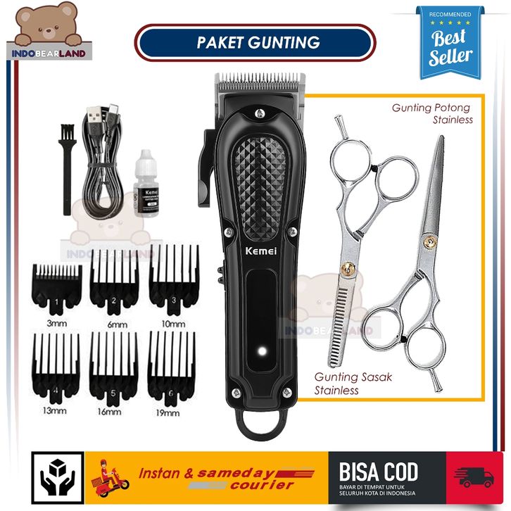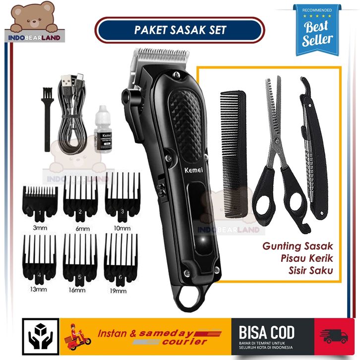 Alat Mesin Cukur Kemei 1071 Full Black Set Barbershop Lengkap Kekinian