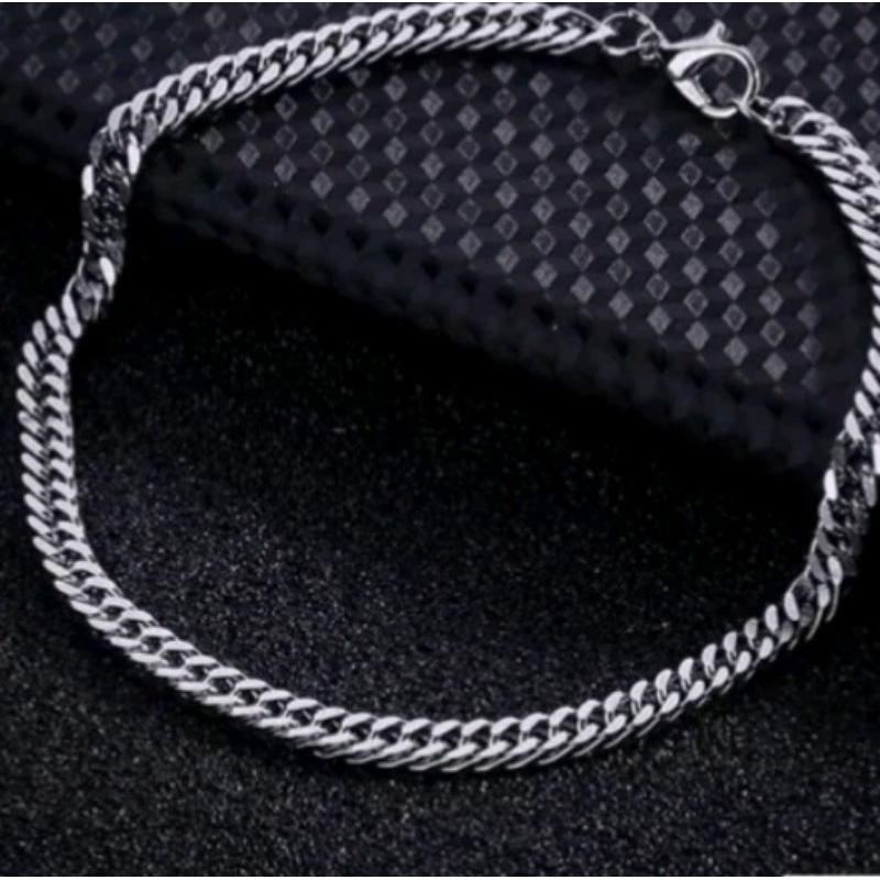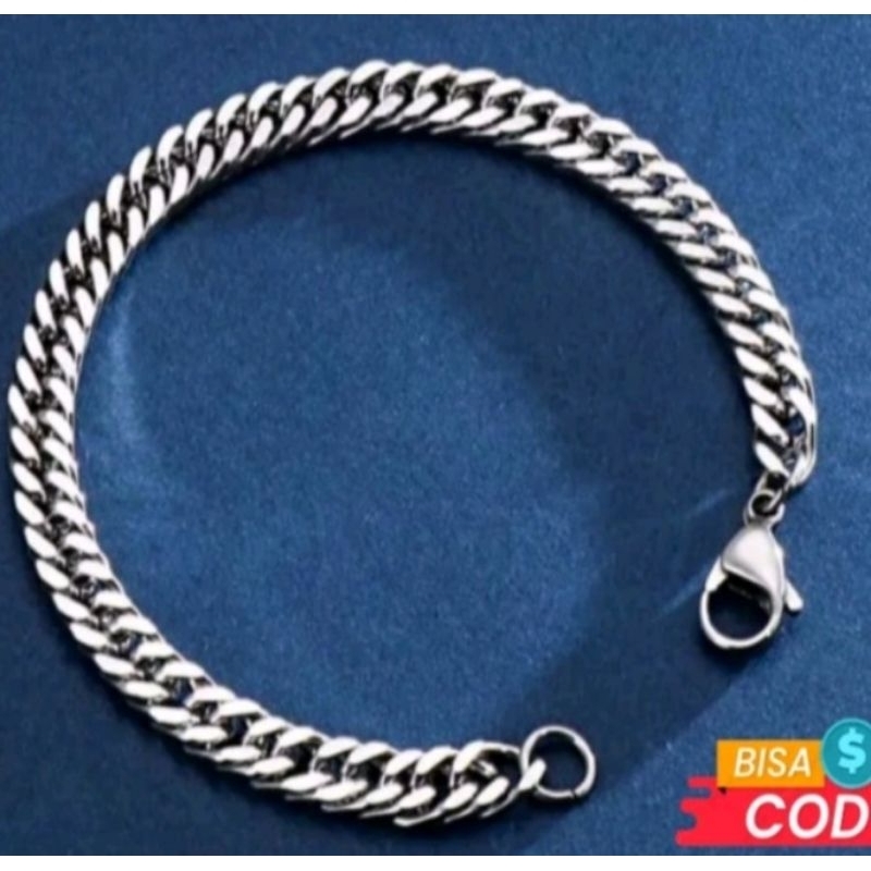 GELANG RANTAI TITANIUM SILVER PRIA WANITA MODEL RANTAI RAPAT ACCESORIES FASHION CASUAL ELEGANT ANTI KARAT