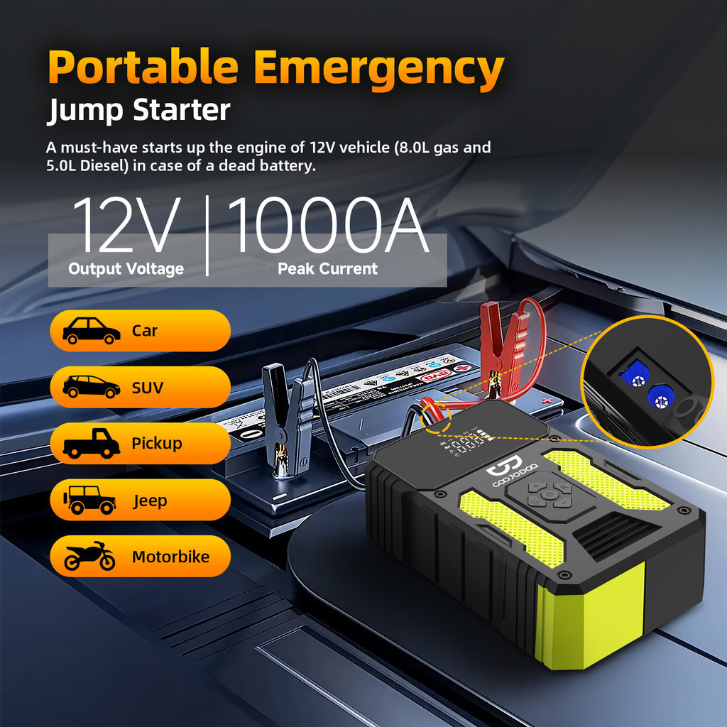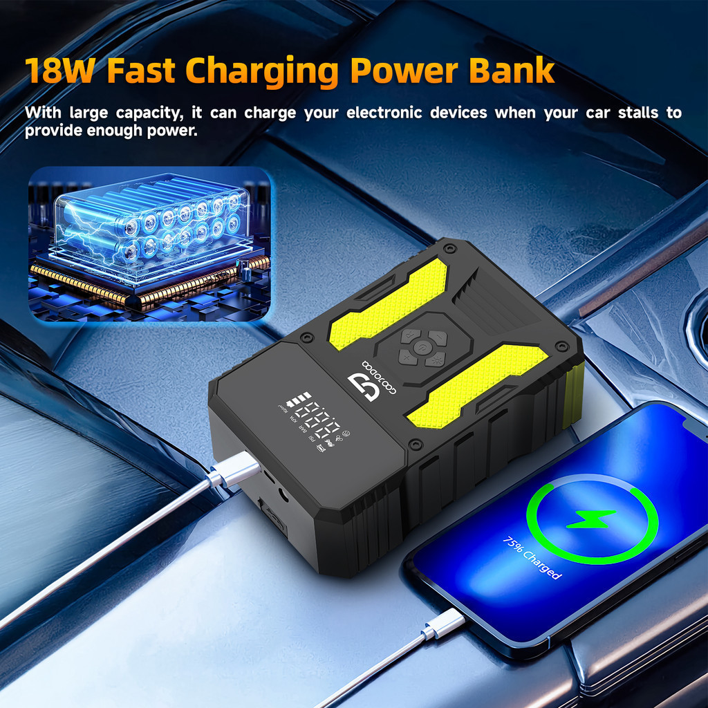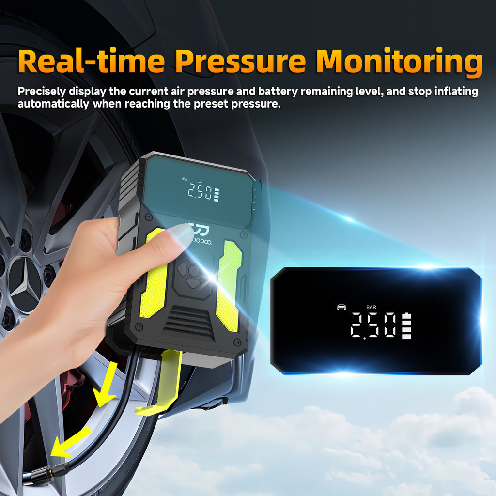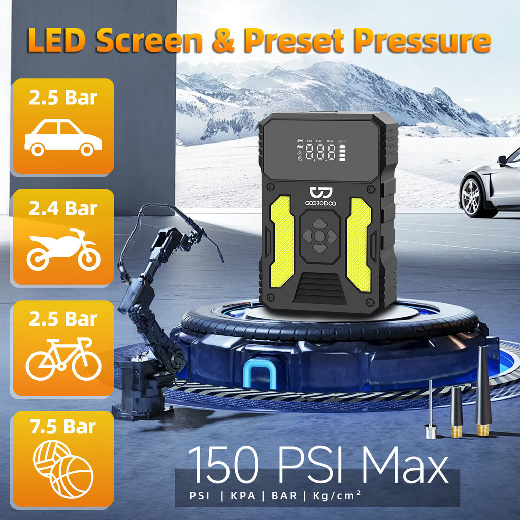 GOOJODOQ Pompa udara mobil Portable Electric 10000 mAh portable power bank LED pressure display 2X quick inflation emerg