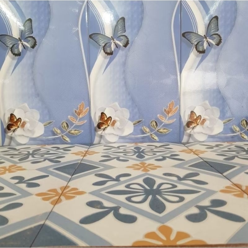 keramik dinding 25x40 keramik dinding dapur/keramik motif bunga kupu kupu/dinding kamar mandi kw 1