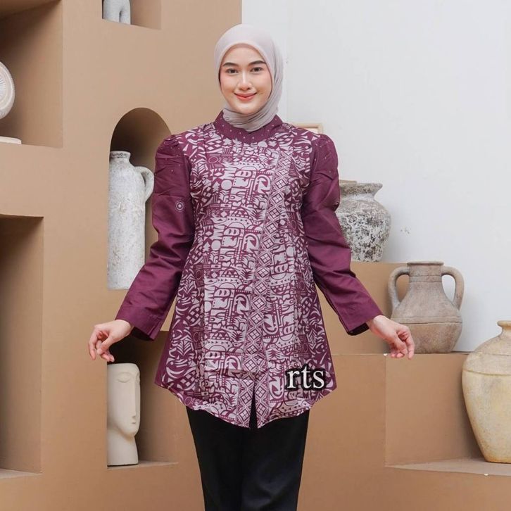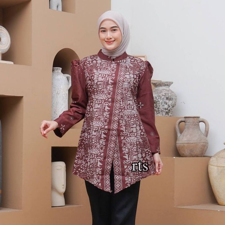 Baju Batik Atasan Wanita Premuim Lengan Panjang Puffy Janggan