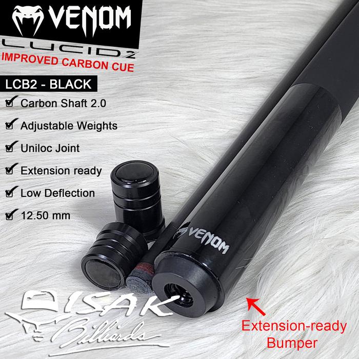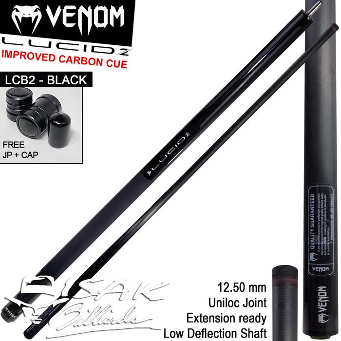 TERLARIS VENOM LUCID CARBON LCB BLACK CUE UNILOC LOW DEFLECTION STICK BILLIARD BUTT ONLY