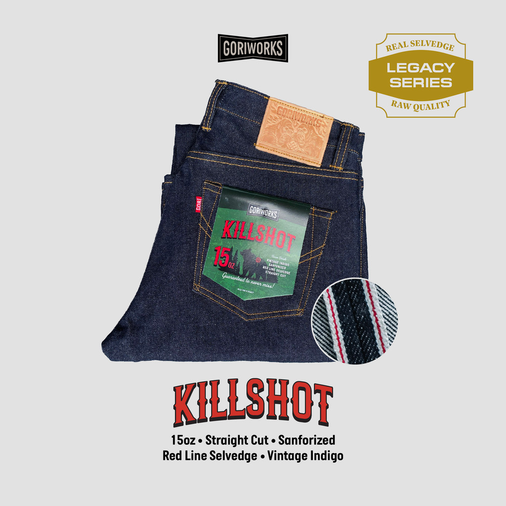 GORI WORKS DENIM - KILL SHOT 15OZ SELVEDGE DENIM STRAIGHT CUT RAW SELVEDGE