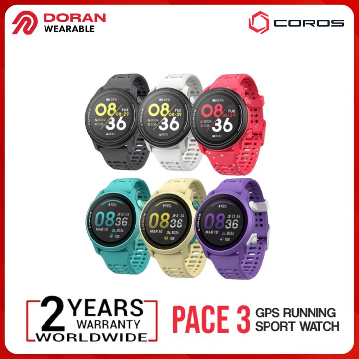 Coros Pace 3 Premium GPS Sport Watch Silicone Band - White | Black - Garansi Resmi 2 Tahun