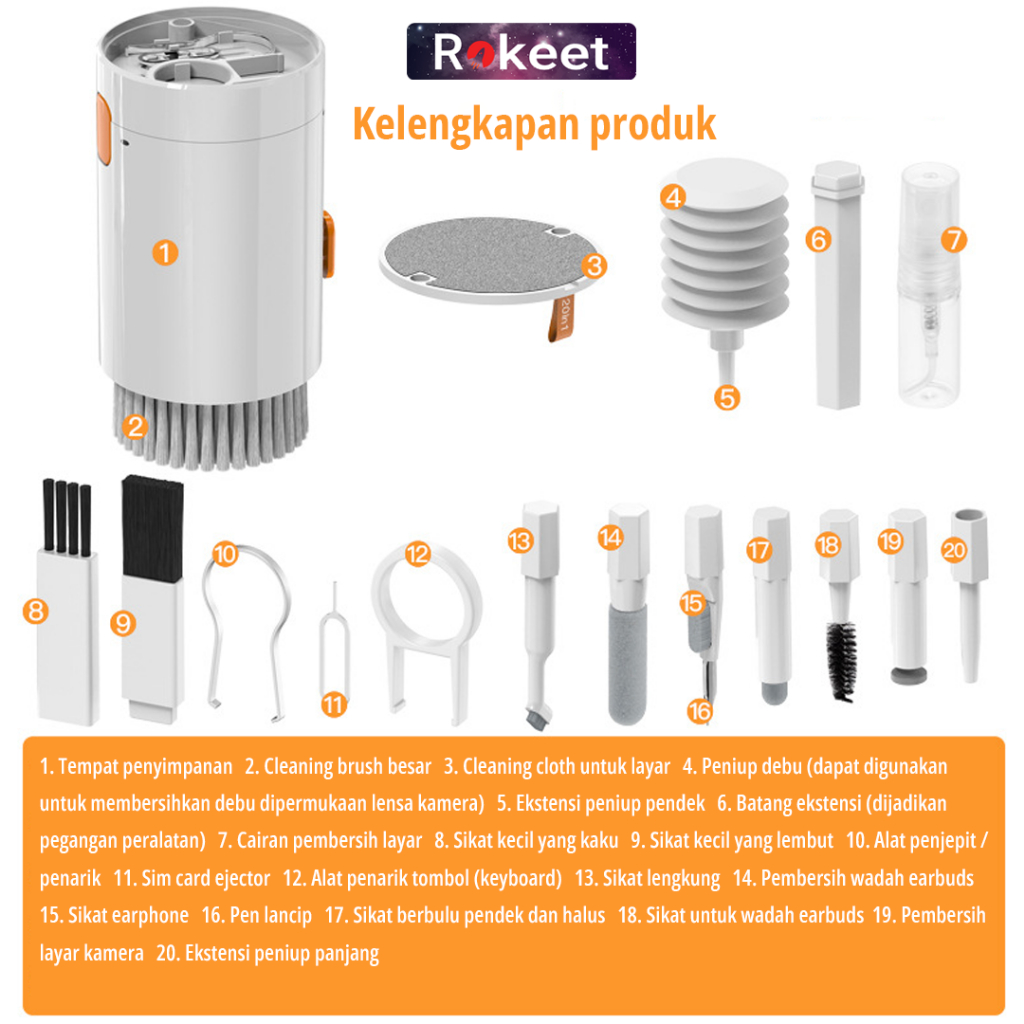 Rokeet Multifunctional 20 in 1 Cleaning Kit Multi Uses Soft Dust Removal Brush for PC Keyboard Headset Headphone
