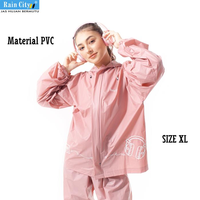FLASH SALE JAS HUJAN SETELAN HEADPHONE 70035 RAIN CITY PVC HEADPHONE HITAM