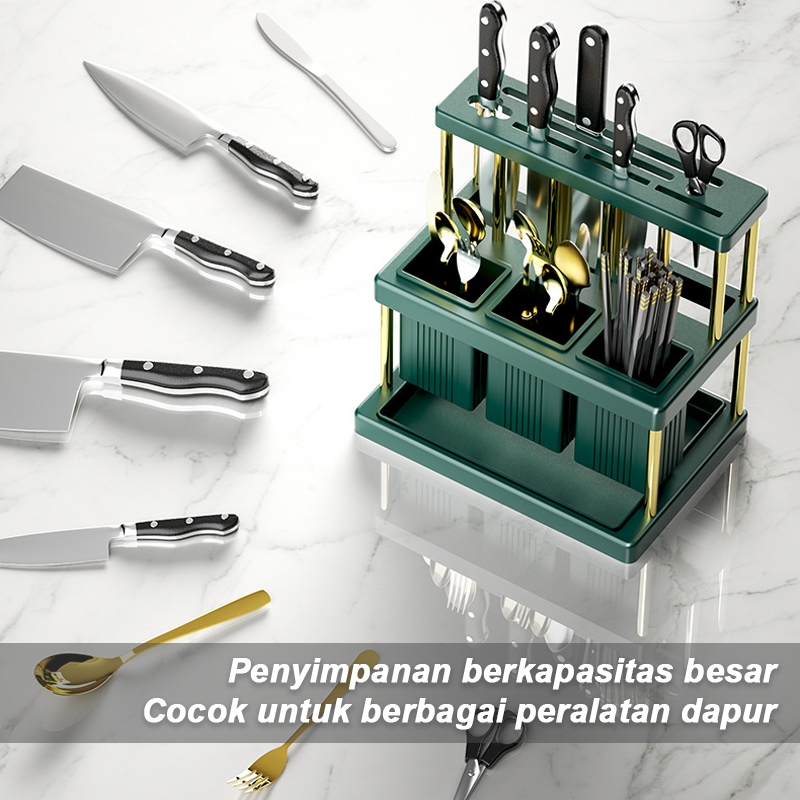 [Star]Tempat Pisau Dapur Pengatur Perkakas Pisau Multifungsi Sumpit Dapat Dikuras Sendok Garpu Wadah Penyimpanan Baki Ra