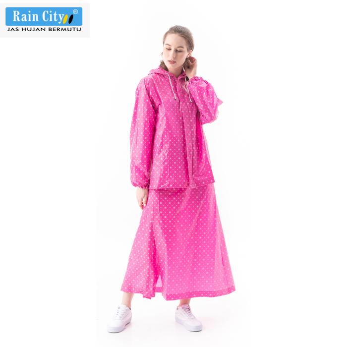 FLASH SALE JAS HUJAN SETELAN ROK STARLIGHT 66015 RALEN STAR PVC PINK