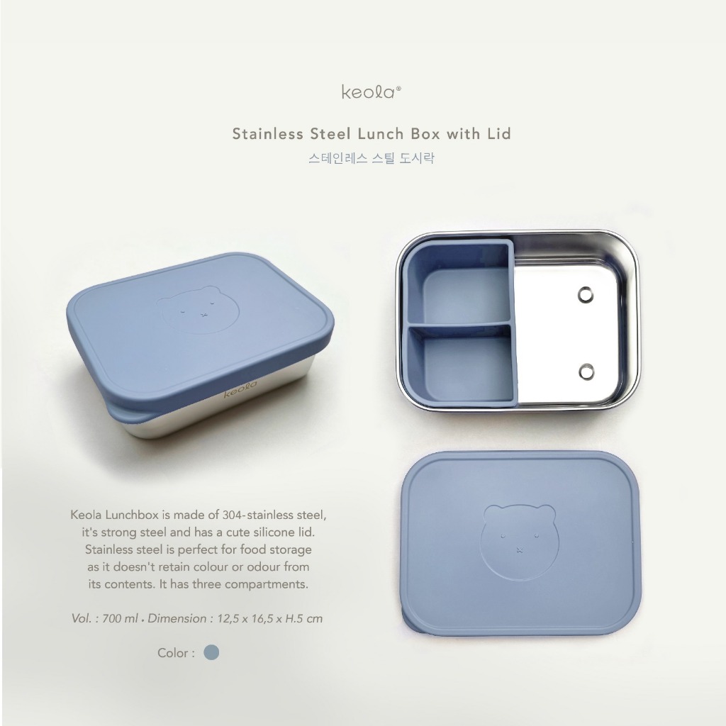 Keola Premium Lunch Box Stainless With Silicon Lid Leakproof/ Kotak Makan untuk Anak dan Dewasa Anti Tumpah