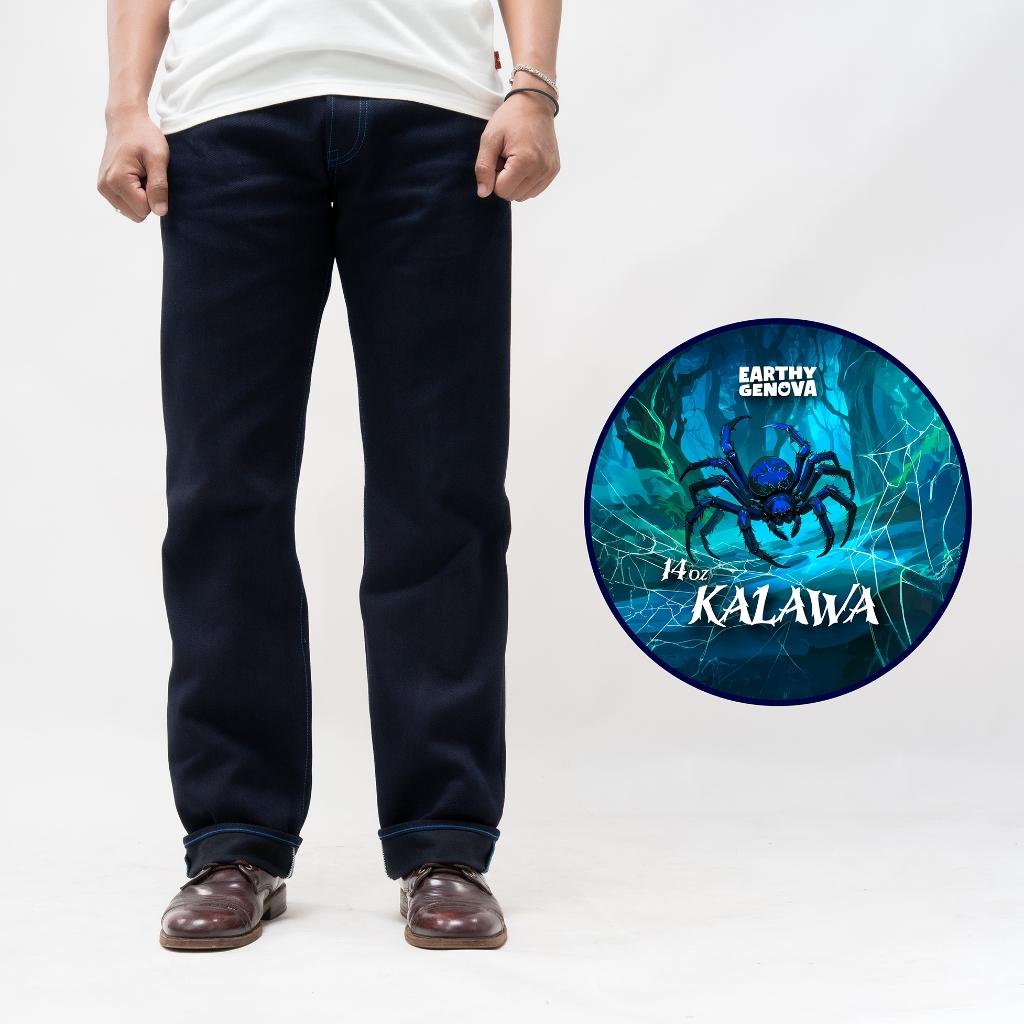 EARTHY GENOVA - DENIM NON SELVEDGE KALAWA 14 OZ SANFORIZED INDIGO X BLACK COLOR RAW JEANS PRIA SLIM STRAIGHT CUT