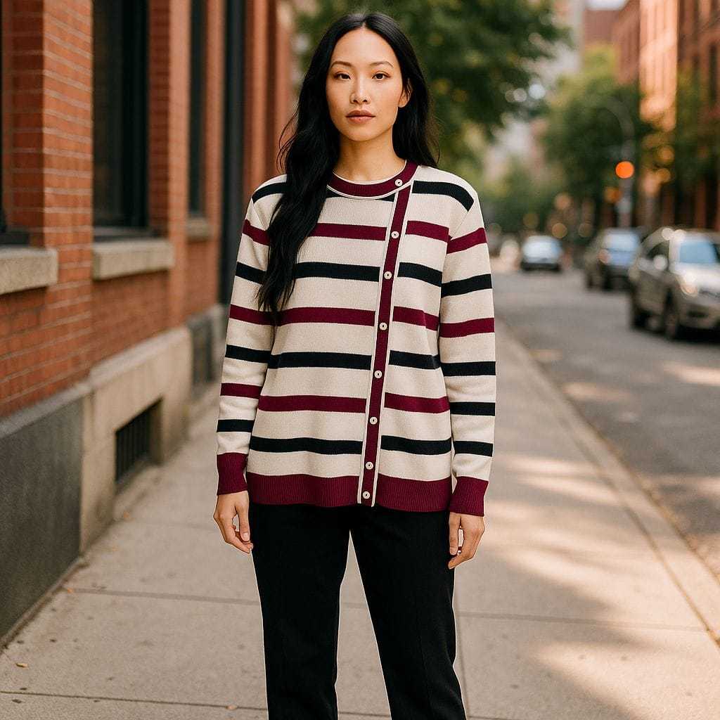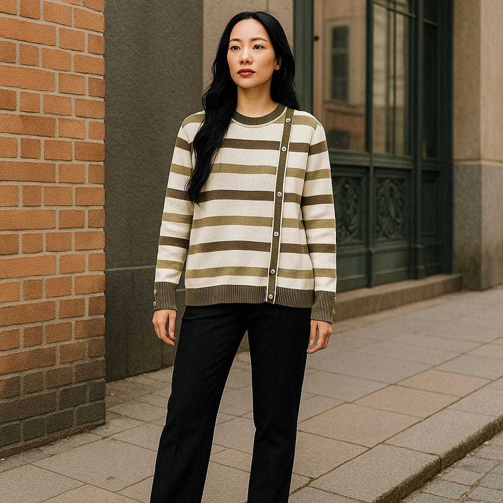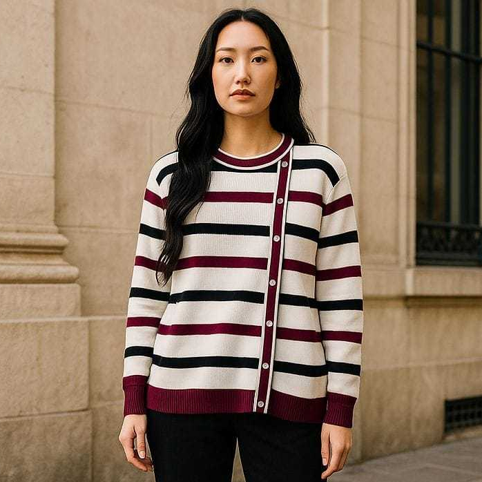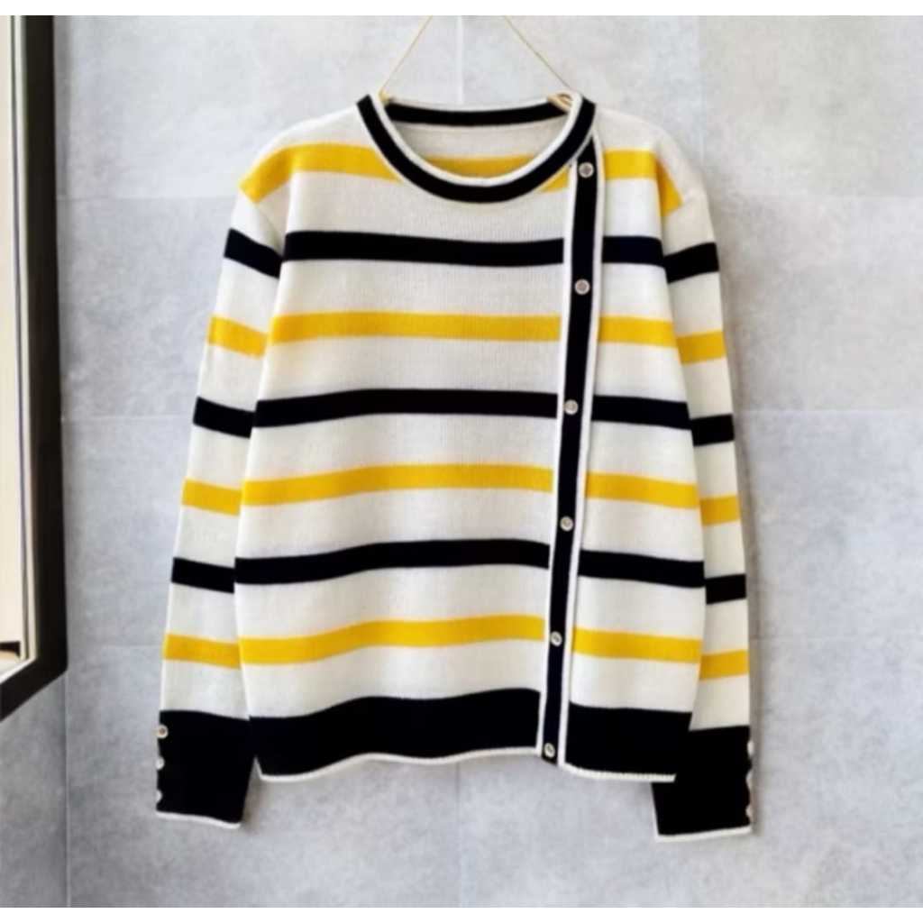 DELIMA SWEATER ATASAN RAJUT WANITA MOTIF STIPE VARIASI KANCING PINGGIR KOREAN STYLE OVERSIZE - TERLARISS