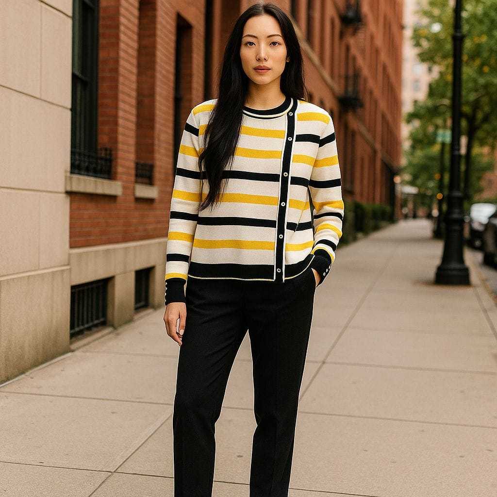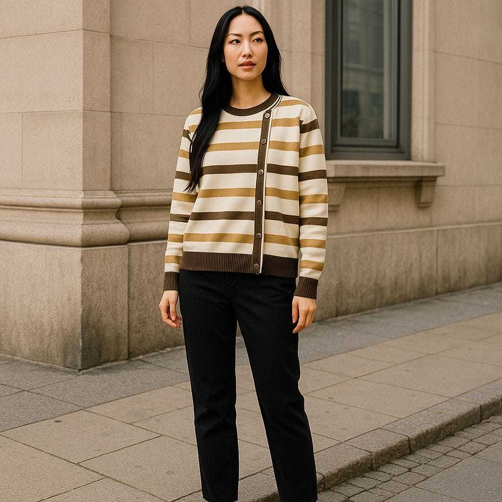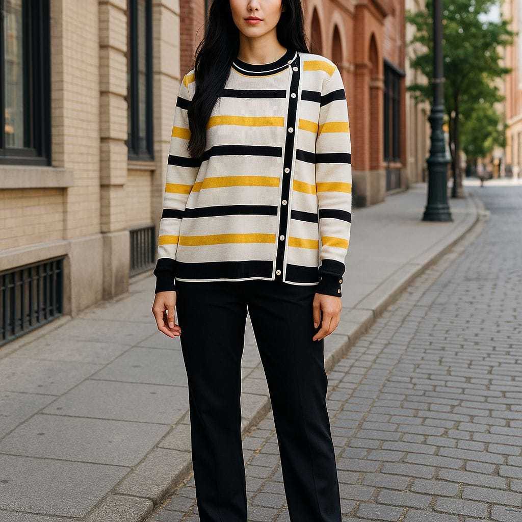 DELIMA SWEATER ATASAN RAJUT WANITA MOTIF STIPE VARIASI KANCING PINGGIR KOREAN STYLE OVERSIZE - TERLARISS