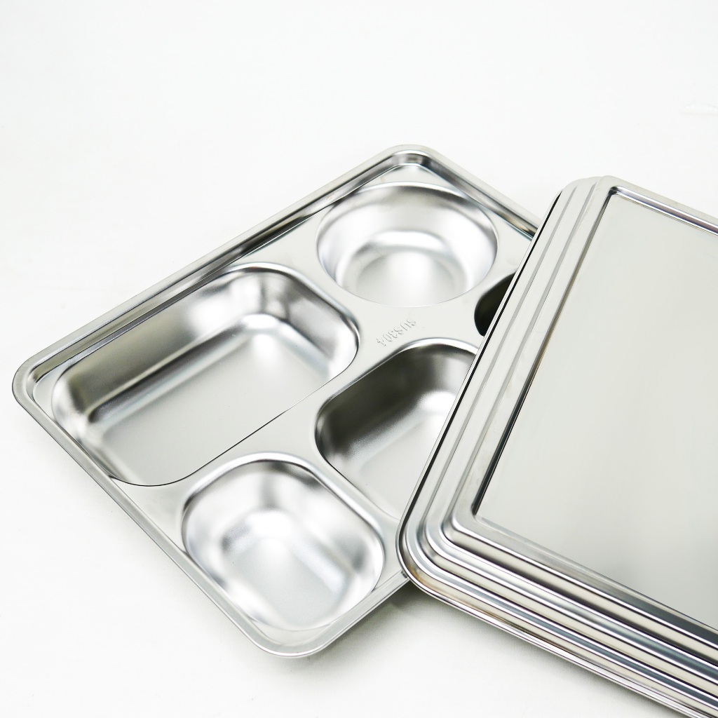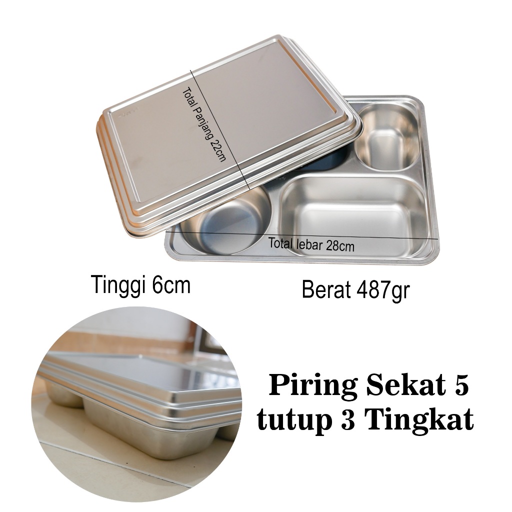 FOOD TRAY STAINLESS 304 SEKAT 5 PLUS TUTUP 6 CM/PIRING SAJI OMPRENG STENLIS TEBAL ANTI KARAT