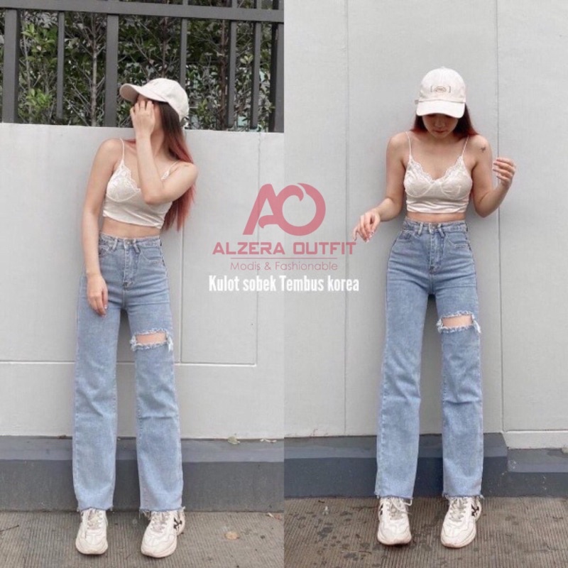 HIGHWAIST RIPPED JEANS KULOT LOOSE SNOWBLUE BLANK 27-34 BY ALZERA