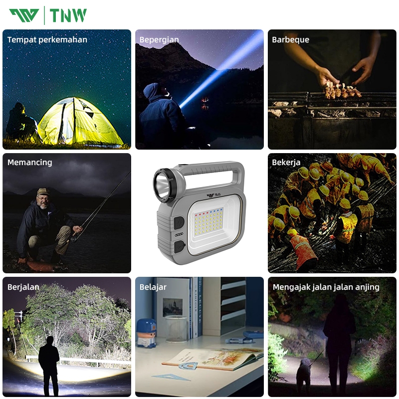 TNW OL6 SENTER LED SUPER TERANG PORTABEL LAMPU TENAGA SURYA OUTSIDE SOLAR EMERGENCY LIGHT 100W MULTIFUNGSI 6000 MAH
