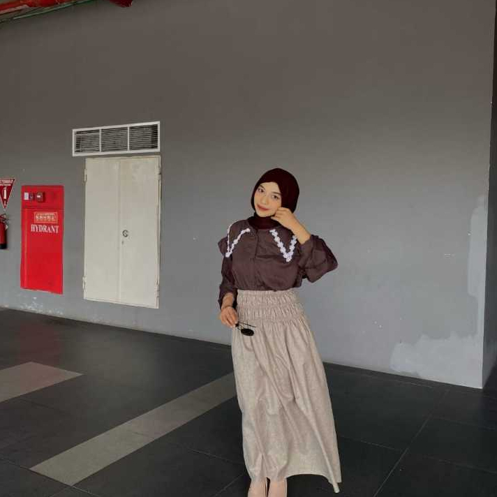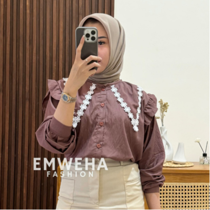 EMWEHA BLOUSE WANITA KERAH RENDA POLO LINEN LEORA
