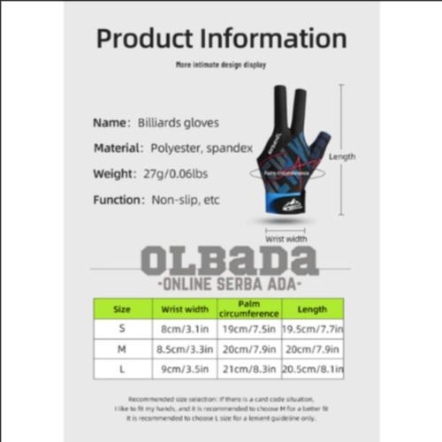 TERLARIS SARUNG TANGAN BILLIARD GOLOVEJOY 2 ANTI SLIP BREATHABLE BLACK 2 M