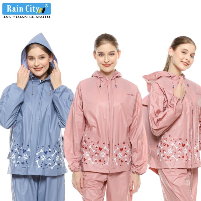 FLASH SALE JAS HUJAN STELAN RANSEL PAWPINT 70053 RAIN CITY PAWPINT PINK